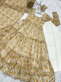 Gorgeous Cream Color Zig-Zag Print Anarkali Suit