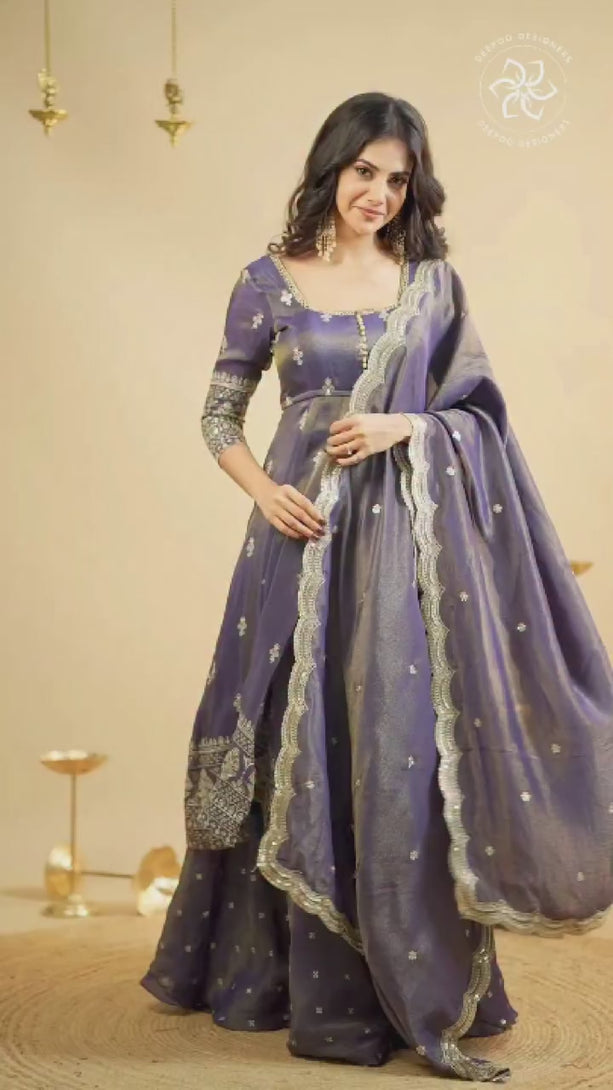 Saakshi`s Grey cosmo Slit Anarkali with skirt Suit Set